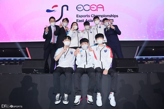 리그오브레전드 대한민국 대표 팀이 12일 서울 송파구 올림픽공원 핸드볼 경기장에서 열린 2021 한중일 e스포츠 대회에서 중국을 3대1로 꺾고 우승을 차지했다.