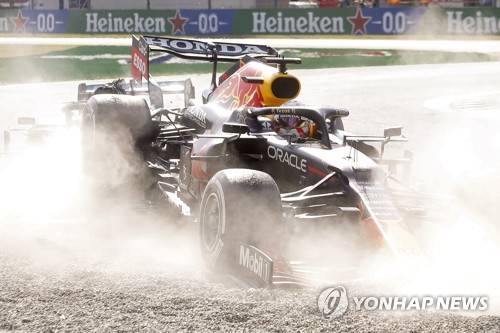 epa09463680 British Formula One driver Lewis Hamilton (L, rear) of Mercedes-AMG Petronas collides with Dutch Formula One driver Max Verstappen of Red Bull Racing during the Formula One Grand Prix of Italy at the Autodromo Nazionale Monza race track in Monza, Italy, 12 September 2021. EPA/MATTEO BAZZI