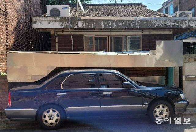 좁은 골목, 한 주택 담벼락 옆에 주차된 차가 눈에 띕니다. 차 모양을 따라 주인이 만든 것으로 보이는 주차 틀에 자동차가 제자리를 찾은 퍼즐 조각처럼 쏙 들어가 있습니다. 당신을 주차의 달인으로 인정합니다.