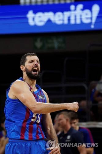 epa09464150 Barcelona's Nikola Mirotic reacts during the Spanish ACB Supercup final basketball match between FC Barcelona and Real Madrid at Santiago Marin arena in Santa Cruz de Tenerife, Canary islands, Spain, 12 September 2021. EPA/Ramon de la Rocha