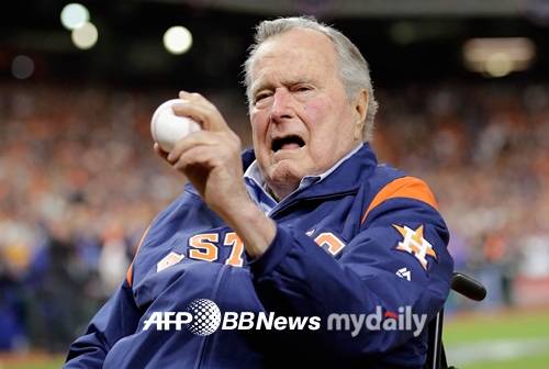 [1991년 4월8일 휴스턴과 밀워키의 개막전에서 시구를 하고 있는 조지 H.W 부시 미국 대통령. 2017년 휴스턴과 LA다저스의 월드시리즈때 부시 전대통령. 윤석열 전총장의 피칭 모습. 사진=AFPBBNews. 윤석열 인스타]- ⓒ마이데일리(www.mydaily.co.kr). 무단전재&재배포 금지 -
