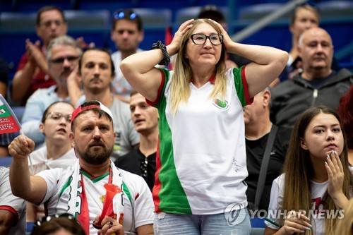 epa09464280 Supporters of Bulgaria during the EuroVolley 2021 Men Round of 16 match between Germany and Bulgaria in Ostrava, Czech Republic, 12 September 2021. EPA/LUKAS KABON
