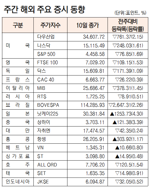 [표]주간 해외 주요 증시 동향(9월 6~10일)