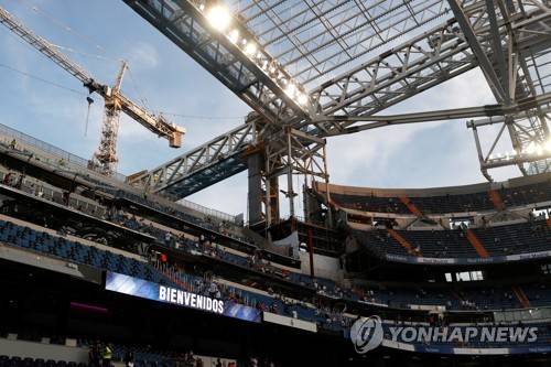 epa09464557 Construction work at Santiago Bernabeu stadium ahead of the Spanish La Liga soccer match between Real Madrid and Celta Vigo at the reopened Santiago Bernabeu stadium in Madrid, central Spain, 12 September 2021. EPA/Emilio Naranjo