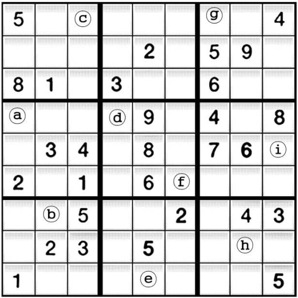 문제에 표시된 ⓐ~ⓘ에 들어갈 숫자를 맞춰보세요.
