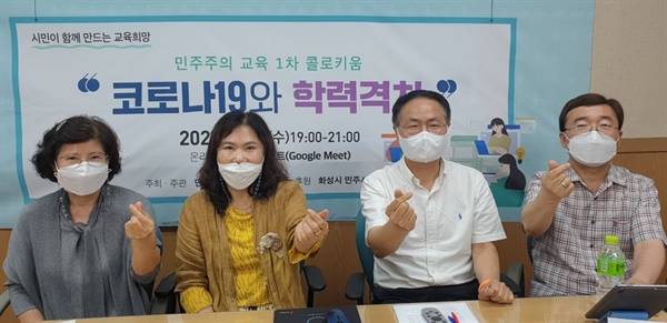 교육시민단체 민주주의학교(상임대표 송주명 한신대 교수)는 지난 8일 저녁 한신대에서 '코로나19와 학력격차'라는 주제로 온라인 콜로키움을 열고, 경기도내 초중등 학교 교장과 수석교사들의 의견을 청취하고 문제해결 방안을 모색했다. 이 콜로키움에는 김경호 전 수원 영덕초등학교 교장, 조규영 전남양주 다산가람초 교장, 이건 전 오산 세마고등학교 교장 등 수원, 안산, 화성, 오산, 남양주, 시흥, 용인, 분당 지역의 전현직 초중고등학교 교장 및 수석교사 10여명이 참석해 송주명 교수의 사회로 2시간을 훌쩍 넘는 열띤 토론을 이어갔다.