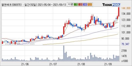 엘앤에프, 장시작 후 꾸준히 올라 +10.01%.. 이 시각 거래량 134만9779주