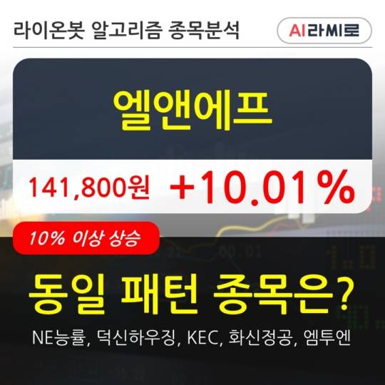 이 시각 거래소에서 엘앤에프 이외에도 NE능률(10.65%), 덕신하우징(10.13%), KEC(12.71%), 화신정공(20.81%), 엠투엔(22.01%) 등이 상승세를 보이고 있다.