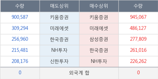 거래량은 309만4756주로 전거래일 대비 44.14% 수준이다.