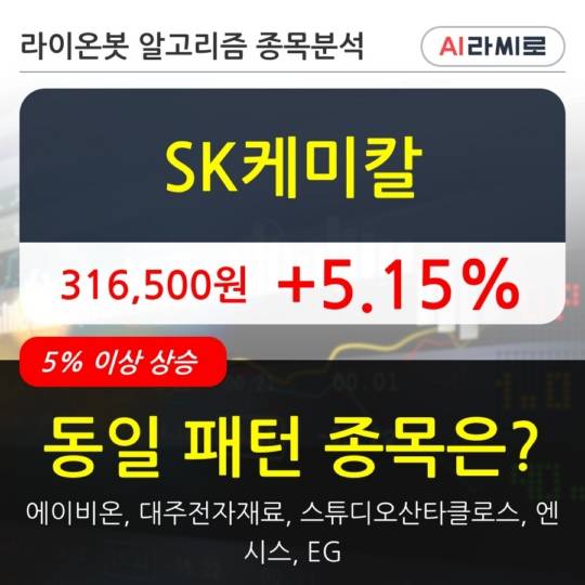 SK케미칼, 전일대비 5.15% 상승.. 외국인 기관 동시 순매수 중