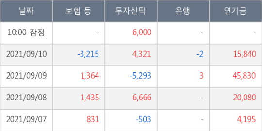 10시 00분 잠정집계에 따르면, SK케미칼은 외국인과 기관이 각각 6,000주, 6,000주를 순매수 중이다. 기관 중에 투자신탁의 자금이 유입되었다.