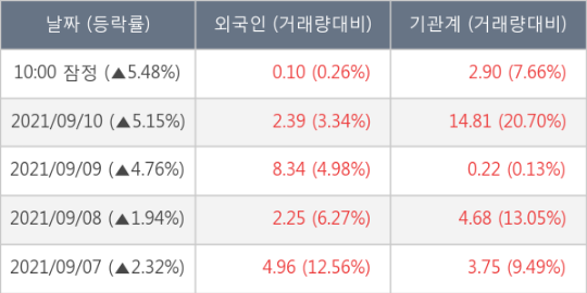 SKC, 상승중 전일대비 +5.48%.. 외국인 기관 동시 순매수 중