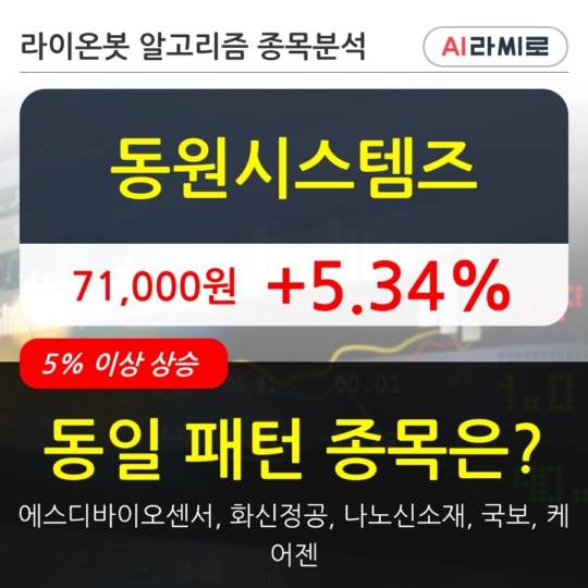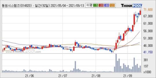 동원시스템즈, 전일대비 5.34% 상승.. 최근 주가 상승흐름 유지