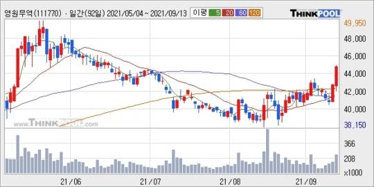 13일 오전 영원무역(111770)이 급등세를 보이고 있다.