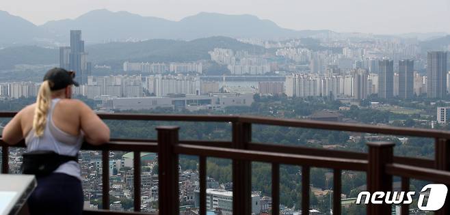 (서울=뉴스1) 안은나 기자 = 13일 서울 중구 남산에서 바라본 도심 아파트단지의 모습. 이날 한국부동산원의 주간 아파트 가격동향조사에 따르면, 9월 첫째주(6일 기준) 수도권 아파트값은 전주에 비해 0.40% 올랐다. 이로써 4주 연속으로 역대 최고 상승률이 유지됐다. 서울은 0.21%로 6주 연속 0.2%대의 높은 상승률을 기록했다. 2021.9.13/뉴스1