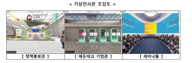 올해 박람회는 '에듀테크, 학습 혁신과 메타버스의 시작'을 주제로, 3차원(3D) 형태의 가상전시관을 통해 현장에서 직접 전시관을 둘러보듯 관람하고 체험할 수 있다. 가상전시관 내 교육부 정책홍보관에서는 새로운 교육기술(에듀테크)을 활용한 수업사례 발표 영상, 디지털교과서 실감형콘텐츠(가상현실, 증강현실, 360도 영상) 등을 볼 수 있다. 산업부 정책홍보관에서는 인공지능(AI)·확장현실(XR) 등을 활용한 지식서비스 연구개발 우수 기술에 대한 소개와 체험이 진행된다. '에듀테크 기업관'에는 약 140개 기업이 참가해 확장가상세계(메타버스)·인공지능·빅데이터 등 다양한 신기술을 접목한 제품과 서비스를 소개한다. 올해 새롭게 구성된 '메타버스 서비스관'에서는 교육 저작 프로그램을 체험하고, 이를 교육에 적용한 사례 영상 등을 볼 수 있다. 원격교육 지원을 위한 국내외 약 200개 기업의 제품과 서비스 정보를 제공하기 위한 장 '에듀테크 마켓 플레이스'을 마련한다.