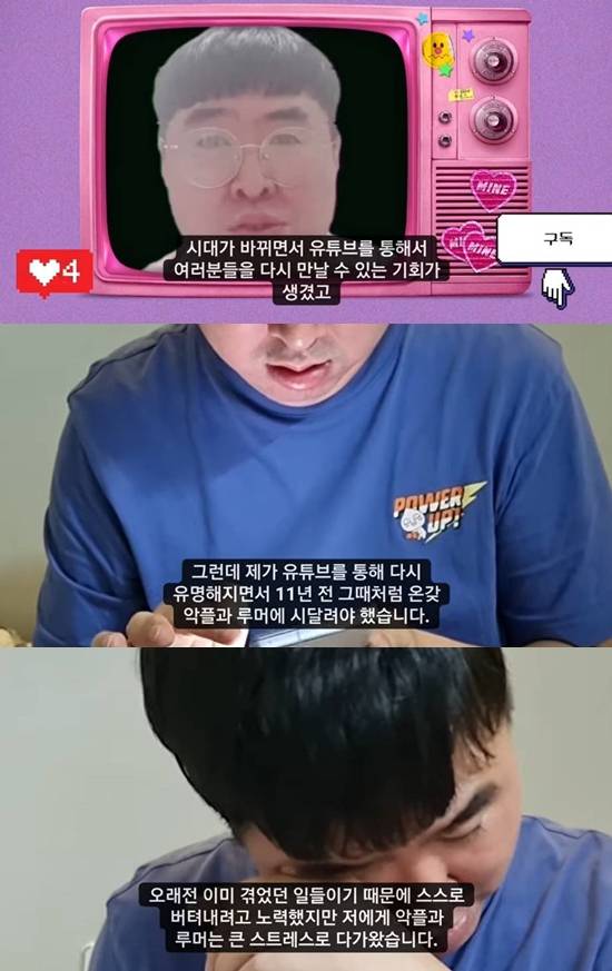 그러면서 박우식은 "제가 유튜브를 통해 다시 유명해지면서 11년 전 그때처럼 온갖 악플과 루머에 시달려야 했다. 오래전 이미 겪었던 일들이기 때문에 스스로 버텨내려고 노력했지만 저에게 악플과 루머는 큰 스트레스로 다가왔다"라고 털어놨다.