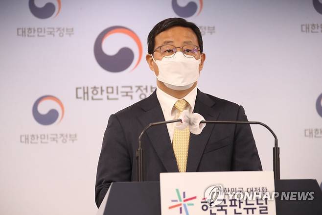 (서울=연합뉴스) 김승두 기자 = 김영중 고용노동부 고용정책실장이 13일 정부서울청사 브리핑실에서 고용행정 통계로 본 '21년 8월 노동시장 동향'을 발표하고 있다. 2021.9.13