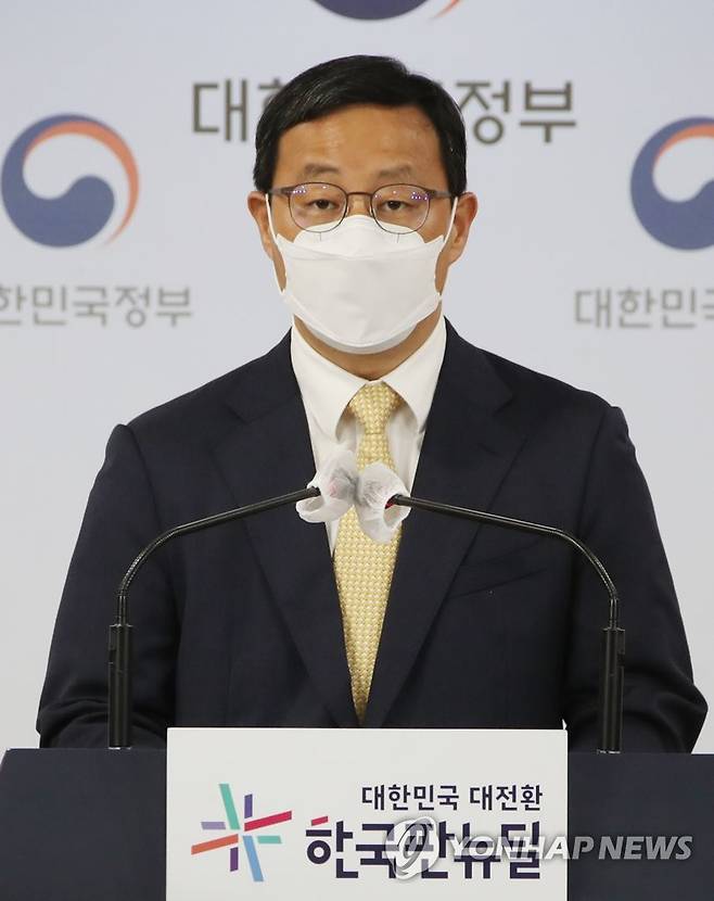 (서울=연합뉴스) 김승두 기자 = 김영중 고용노동부 고용정책실장이 13일 정부서울청사 브리핑실에서 고용행정 통계로 본 '21년 8월 노동시장 동향'을 발표하고 있다. 2021.9.13