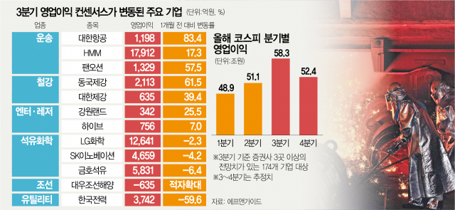 [3분기 실적 미리 보니] 눈높이 오른 운송·철강..꺾이는 조선·유화
