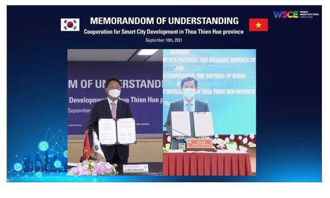 한국토지주택공사(LH)는 베트남 중부 후에성 지역에서 추진하고 있는 스마트시티 및 경제구역 사업의 원활한 추진을 위해 10일 베트남 후에성과 스마트시티 협력 양해각서(MOU)를 체결했다고 13일 밝혔다. 이번 협약식은 일산 킨텍스에서 개최된 제5회 월드 스마트시티 엑스포 행사 중 비대면 온라인 화상시스템을 통해 한국과 베트남에서 이원 생중계로 진행됐다.
