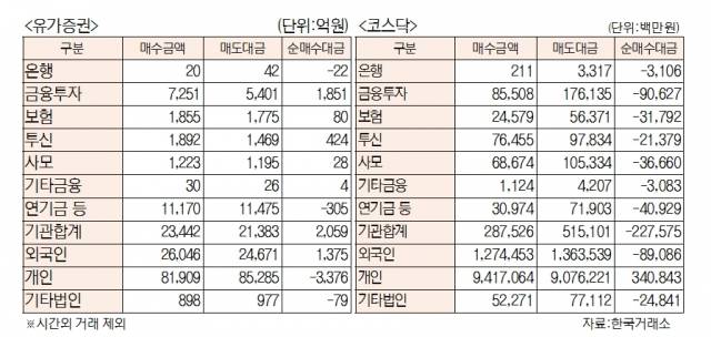 [표]유가증권 코스닥 투자주체별 매매동향(9월 13일)