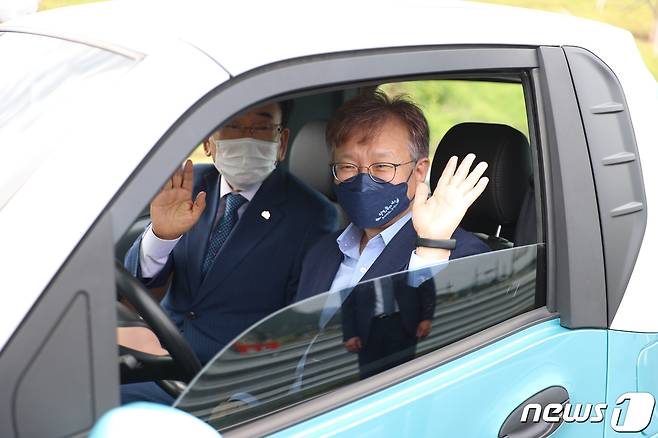 (서울=뉴스1) = 권칠승 중소벤처기업부 장관이 13일 전남 영광군 e-모빌리티 규제자유특구에서 초소형 전기차를 체험하고 있다. (중소벤처기업부 제공) 2021.9.13/뉴스1