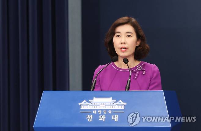(서울=연합뉴스) 최재구 기자 = 박경미 청와대 대변인이 13일 청와대 춘추관에서 문재인 대통령의 제76차 유엔 총회 참석 등과 관련해 브리핑하고 있다. 2021.9.13