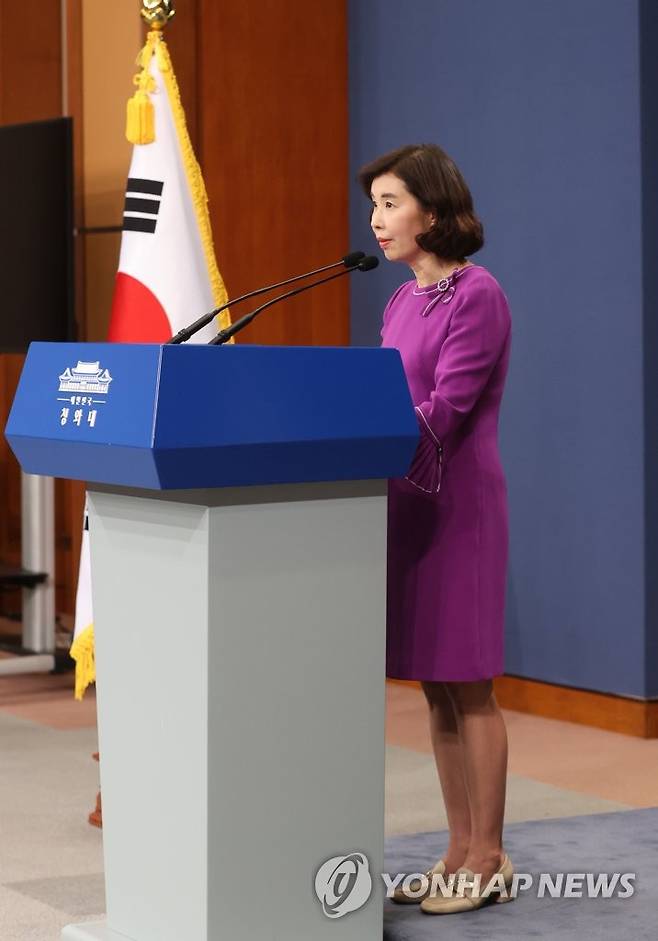(서울=연합뉴스) 최재구 기자 = 박경미 청와대 대변인이 13일 청와대 춘추관에서 문재인 대통령의 제76차 유엔 총회 참석 등과 관련해 브리핑하고 있다. 2021.9.13