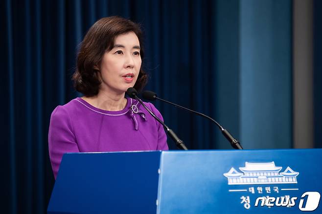 (서울=뉴스1) 유승관 기자 = 박경미 청와대 대변인이 13일 청와대 브리핑룸에서 문재인 대통령의 제76차 유엔 총회 참석 관련 브리핑을 하고 있다.
