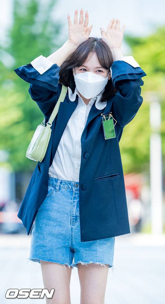 레드벨벳 웬디가 사옥으로 들어서며 취재진을 향해 포즈를 취하고 있다. 21.09.13 /rumi@osen.co.kr