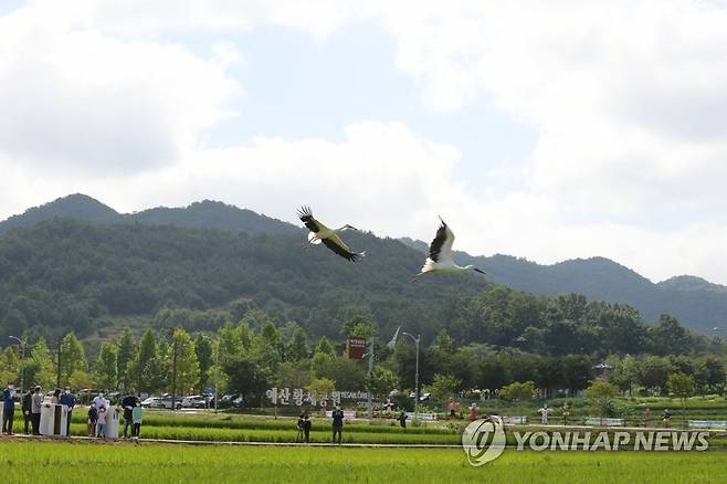 (예산=연합뉴스) 충남 예산군은 지난 11일 예산황새공원에서 부화한 황새 10마리를 자연으로 보냈다고 13일 밝혔다.