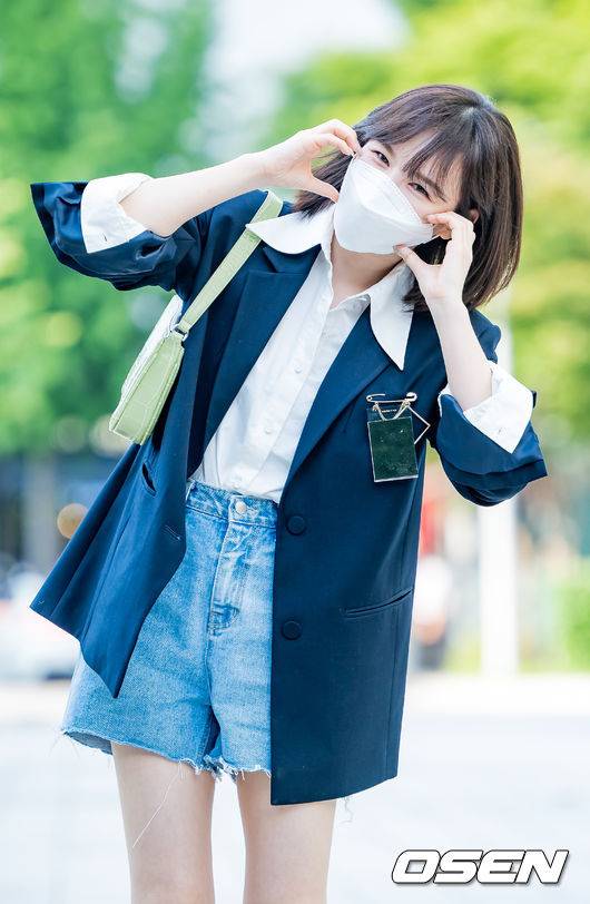 레드벨벳 웬디가 사옥으로 들어서며 취재진을 향해 포즈를 취하고 있다. 21.09.13 /rumi@osen.co.kr