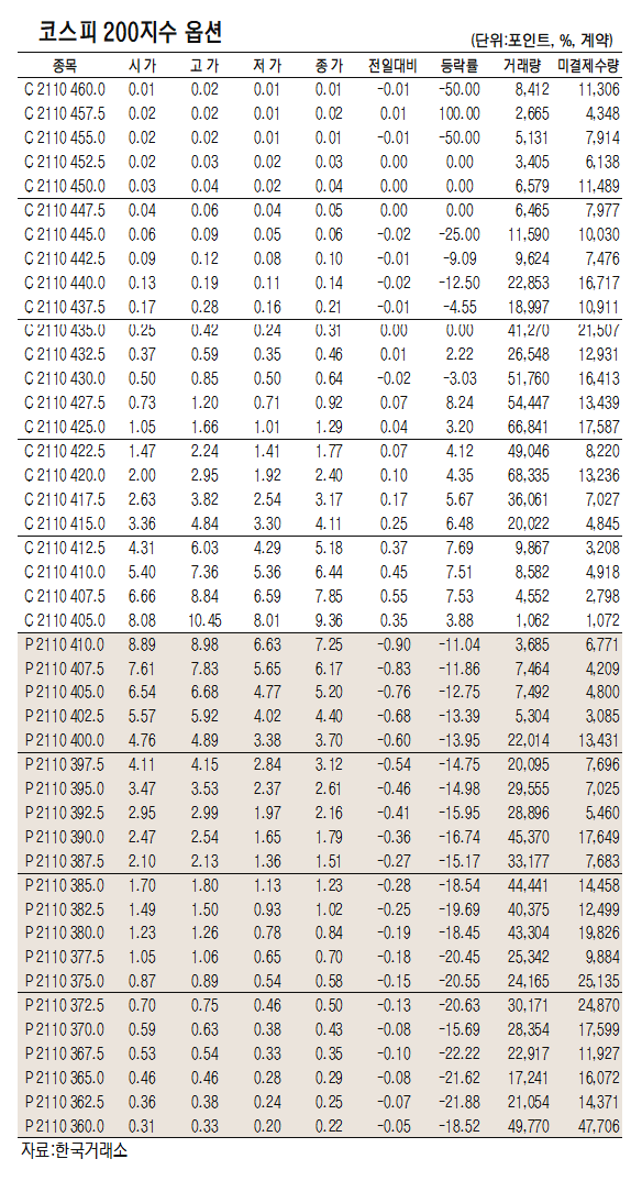 - [표]코스피200지수 옵션 시세(9월 9일)