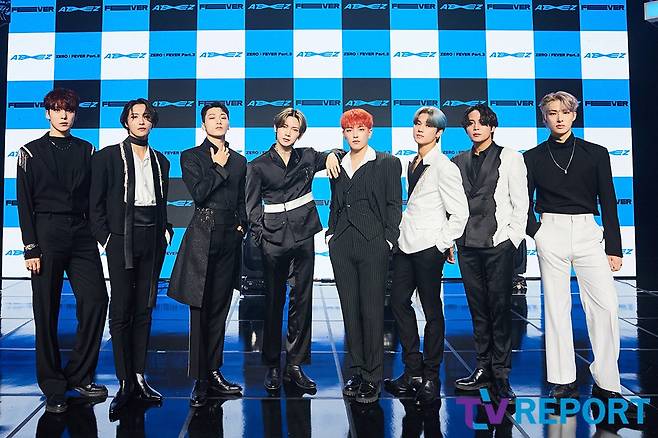 [TV리포트=백수연 기자] 그룹 에이티즈가 13일 오후 온라인 생중계로 진행된 일곱 번째 미니 앨범 '제로 : 피버 파트 3(ZERO : FEVER Part.3)' 발매 기념 쇼케이스에서 포즈를 취하고 있다.