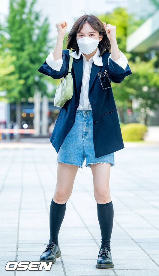 레드벨벳 웬디가 사옥으로 들어서며 취재진을 향해 포즈를 취하고 있다. 21.09.13 /rumi@osen.co.kr