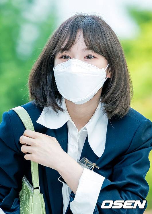 레드벨벳 웬디가 사옥으로 들어서며 취재진을 향해 포즈를 취하고 있다. 21.09.13 /rumi@osen.co.kr