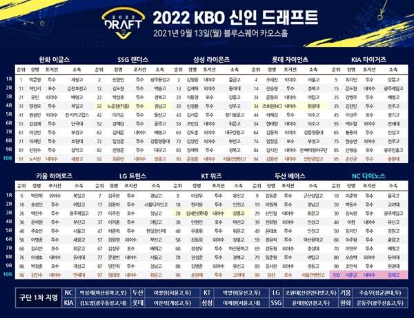 | ▲ 2022 KBO 신인 드래프트를 통해 선발된 선수들의 명단. |