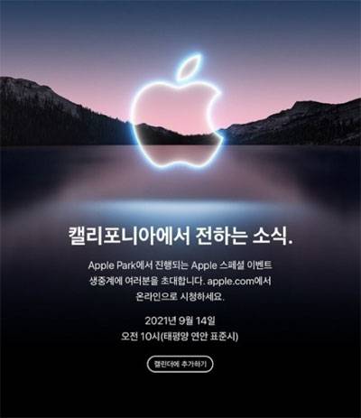 13일 업계에 따르면 애플은 14일 오전 10시(한국시간 15일 오전 2시) 미국 캘리포니아주 쿠퍼티노 애플파크에서 '스페셜 이벤트'를 개최한다. 이날 이벤트에선 아이폰13과 함께 애플워치7, 에어팟도 공개될 전망이다.