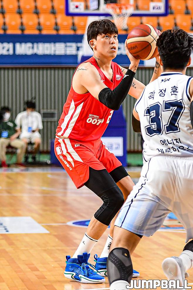 [JB포토] 2021 MG새마을금고 KBL컵대회, SK 최준용 '3점슛 간다'