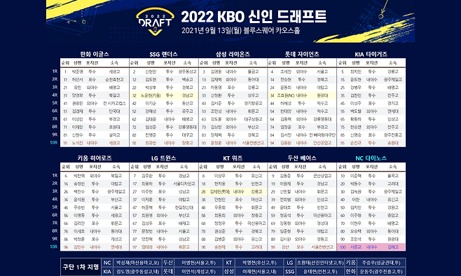 성 단장은 13일 신인 드래프트 중간 인터뷰에서 "이번 드래프트에서는 포지션을 정하고 지명하기보다 가장 재능이 많은 선수를 뽑으려 노력했다. 만족도는 100점 만점에 100점이다. 원했던 선수를 모두 뽑았다"고 말했다.