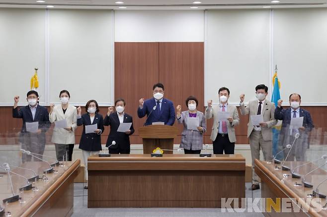 이날 기자회견에는 장영덕 의원, 곽희운 의원, 류인출 의원, 김정희 의원, 이용철 의원, 문정환 의원, 조상숙 의원, 이숙은 의원, 황기섭 의원 등 9명이 참석했다.