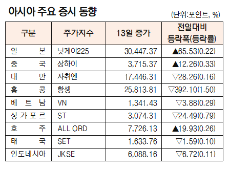 [표]아시아 주요 증시 동향(9월 13일)
