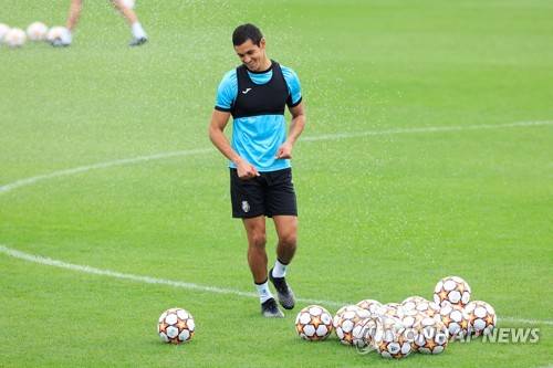 epa09465207 Villarreal's Aissa Mandi attends his team's training session in Villarreal, eastern Spain, 13 September 2021. Villarreal CF will face Atalanta Bergamo in their UEFA Champions League group F soccer match on 14 September 2021. EPA/Domenech Castello
