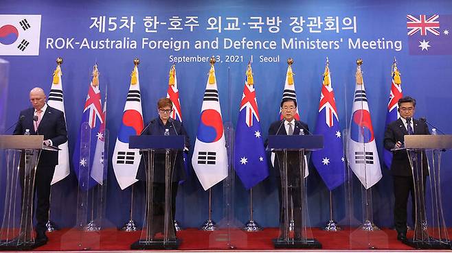 서 장관은 오늘(13일) 한-호주 외교·국방 장관회의 공동 기자회견에서 "오늘 국방장관회담이나 2+2 장관 회의에서는 '쿼드 플러스'나 파이브 아이즈에 대한 구체적인 논의는 없었다"며 이렇게 말했습니다.