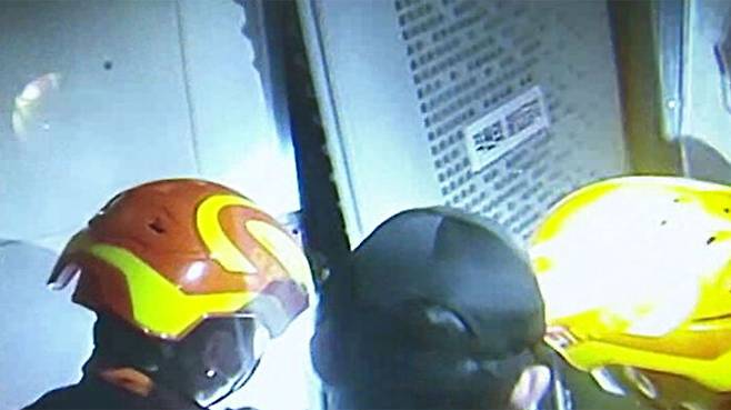 갖가지 장비가 동원되고, 결국 경찰이 출동한 지 2시간 만에 문을 뜯어내고 안으로 진입합니다.