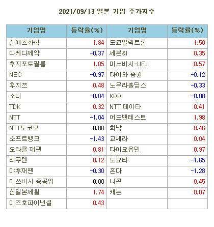 [표]일본 주요기업 주가(9/13)