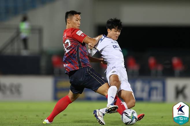 이후 집중력의 차이가 결과를 바꾸었다. 김천 역시 상대 진영에서 강하게 압박하며 실수를 이끌었고 곧장 역습을 진행했다. 패스를 받은 조규성이 측면 돌파 후 크로스하였고 고승범이 골대 앞 혼전 끝에 골을 넣었다.