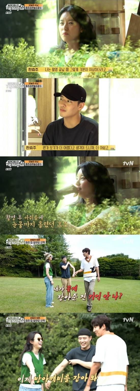 이광수는 "너 울었지 않냐"라며 회상했고, 한효주는 "눈물이 나더라. 눈물이 자연스럽게 떨어지더라. 꾹 참아보았지만"이라며 민망해했다.