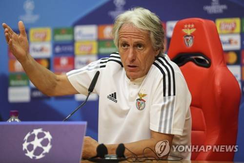 epa09465500 Benfica's head coach Jorge Jesus speaks during a press conference at Benfica's training camp in Seixal, Portugal, 13 September 2021. Benfica Lisbon will face Dynamo Kiev in their UEFA Champion League group E soccer match on 14 September 2021. EPA/MIGUEL A. LOPES
